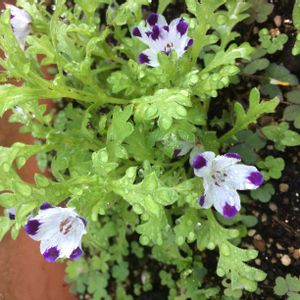 おはようございます🌄ようやく咲いたネモフィラマキュラータ🎉もちろん、種から育てたシリーズ😁です。ホントはフチの青色がもっとはっきりしてるはずなんだけど?とにかく嬉しくてupしちゃった😂