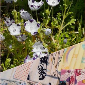 ジャーン❗ マスク100枚(たぶん😅)突破 記念🌸 もらってくださった方々ありがとう~😊 励みになります🙌 まだまだ頑張って作ります こぼれ種のネモフィラも咲いたよ🌸