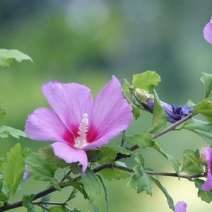 木槿 韓国の国花 数年前の台風でほぼ地面に並行、地面に付く位になりました。もう、枯れるのかもと思っていましたが、少しずつ回復し、今はほぼ真っ直ぐになり花を咲かせています。 しなやかで強い花です