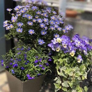 フェリシア沢山咲いてきました❣️ 切り戻したソーダさん💙 まだがんばってくれてます😊 アイビーが急成長❣️ 私好みに垂れてくれてます😁 お財布に優しいロベリアも 葉っぱモリモリになってきました🌱