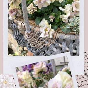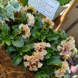 天の羽衣♡パンジー ずっと葉っぱに隠れていましたが、最近花が上がってカゴからあふれて来ました🎶 アイボリーのお花が可愛らしいです☺️