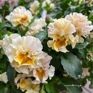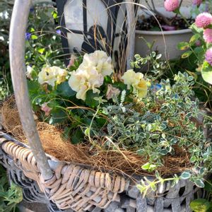 天の羽衣 〜初めてカゴの寄せ植えを作りました〜 パンビオ初心者なので初めて聞く名前のパンジーさん😌花色はクリーム色✨ふりふりで弁質がやわらかく優しい雰囲気です♪予定外で連れて帰りました😊 今日作ったばかりでまだ馴染んでないけど記念に投稿😁♪可愛い〜♡
