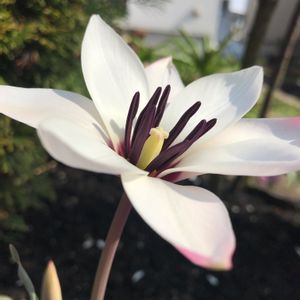今日のお花🌸 原種チューリップ・ペパーミントスティック🌷 昨年の春🔅おひさまを浴びて開ききった姿です✨✨ 秋に球根を買い足したので、今年はたくさん咲いてくれるはず‼️ 春が楽しみです😊🎶
