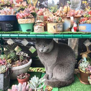 初多肉狩り🎵 寄せ植え用に可愛い苗を買ってきたけど、属がバラバラだから無理かなぁ…😵 匂いを嗅ぎにきて、危うく「ガブりっ」といきそうだったレックス😸