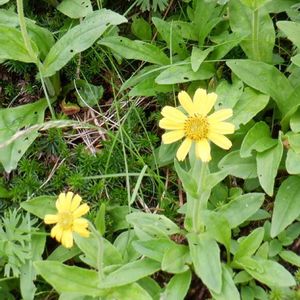 連投失礼します😌 〜💚💛ウサギギク(兎菊)💛💚〜 キク科 先日、千畳敷カールにちょこちょこ咲いていました🎶 平地でもよく似たお花を見ますが、高山に咲くウサギギク💛可愛いお花💛💚 雪解け後の茎の根元につく2個の葉が立って伸び、それをうさぎの耳に見立てたとか、諸説あるそうです😌 R.5 7/21 撮影