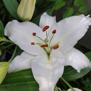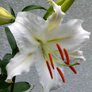 カサブランカが開花しました。 山百合にあった斑点が無いのが特徴でしょうか。 甘い香りを放っております。