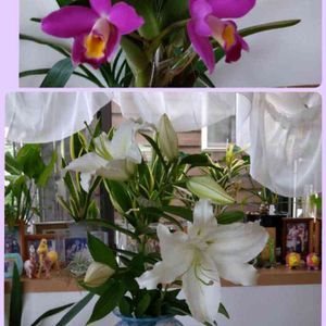 おはようございます^_^ やっと晴れました! 今朝はカサブランカの親株が咲きました^_^💞 ミニカトレアも2つ咲いたので一緒に投稿です^_^💞
