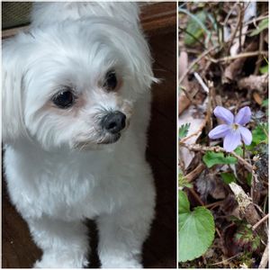 散歩中、 路地隅に、咲いてました。健気に咲いていました。 私がパチリ📸するのに、シロクンはお利口に待ってくれてました。 シロクンpicの方は、ニューヨーク後でさっぱりしていますネ!😊