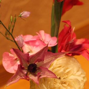 母の日のうちに投稿します!(╹◡╹) 朝から外出して暗くなる頃に 帰宅して、急いで夕闇の中で 庭に咲いている花のなかで 切り花に出来る子たちを 急いで探して、こわごわ 切りました(^^) 花瓶に生けた妻には 『みんな「私が私が」の花…』😁 と言われながら・・・ すでに天国にいる母へのあり合わせ の庭の花 これまでも、朝も、咲いていなかった クレマチスが夕闇のなか、一輪だけ 咲いていました😃 切り花には向かなかったのかも 知れません・・・😅 夜の撮影は感度ISO6400となり やはり粗い画像になります😰