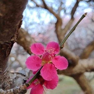 梅林・令和物語 六頁 💕💕💕 お気に入りのpic(*˘︶˘*).。.:*♡ 藤牡丹枝垂れ 豊後系 花は遅咲きの 淡紅色で大輪。 2022/03/05 撮影