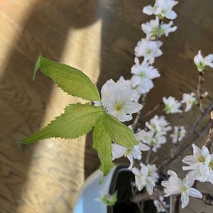 おはようございます☀ 啓翁桜の葉が瑞々しい若緑です お花も綺麗ですが葉っぱもステキ💚