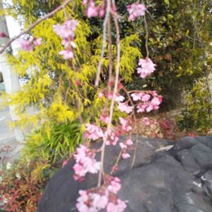 富士枝垂れ桜 我が家の開花宣言です。 これからラックスともに楽しませてくれます。 我が家の庭に植え付けて、4回目の開花。 🏷marrie枝垂れ桜 で成長見ていただけます。