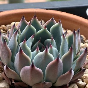 エケベリア ジャッカル 紫っぽい綺麗な色に成ってきた💕 外は今日も雪 縁側の前は60cmは楽に有りそう🤣 でも今日1日の我慢😣 そうしたらお日様☀️に会えるからね
