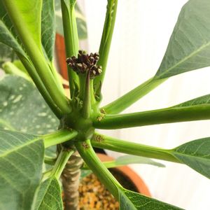 初めてつけたプルメリアの花芽がどんなふうになってくか観察するのが日々の楽しみ♫ 今は日差しが強すぎるから、しばらく室内で。
