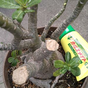 急に寒くなって室内に入れる鉢や植え替えで半日💦 アデニウムも大きくなりすぎて時期は今じゃないでしょうがリビング窓辺に収まるように初めて切ってみました✂️ 根っこを見てびっくり😳 新しく仲間入りしたミモザも植え替え🌱