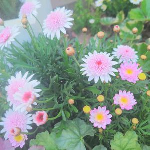 マーガレットあずきちゃん。 職場で挿し木で育ったものを貰ってきてたものに 花がつきました☺️ 蕾もあるし これからが楽しみ‼️