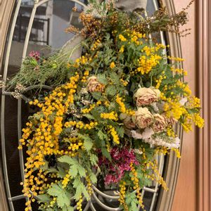 昨夜思い立ってミモザスワッグ✨ 可愛い💓
