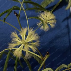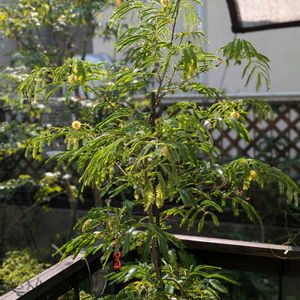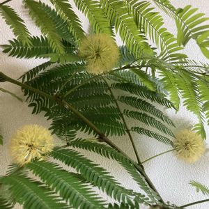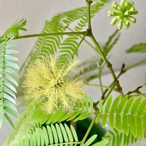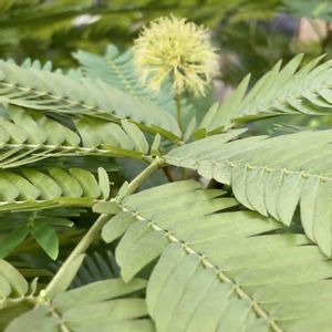 4月22日 今日のお花 🌿🌿エバーフレッシュ🌿🌿 暗くなると葉を閉じるユニークな植物です。 別名:アカサヤネムノキ、エバーグリーン ①2025.4月 撮影 ②2024 6月撮影