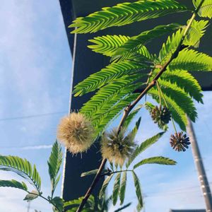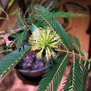 ちょっとお久しぶりです😆 長雨で写真とれほどの子もおらず… 買いたい苗もなくてテンションも上がらず… そんな中、エバーフレッシュが咲いてくれたよ✨ 購入してから初めてのお花🌼 黄色いポンポンが可愛いね♥️
