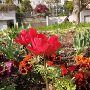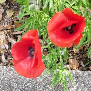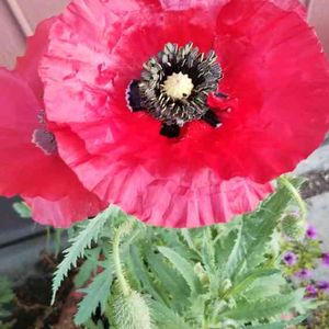 葉っぱがギザギザで真っ赤な花弁で中心付近が黒くなっています。 何と言う花でしょうか?教えてください🙏