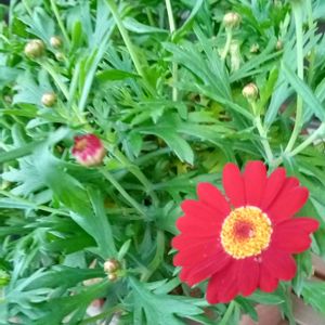 ボンザマーガレット🌼 ぼろぼろ苗から復活後、様子を見て、一度蕾を10個以下くらい切った。 最近、ぽつぽつ咲いてきました。 マーガレットが咲くかは気温と関係があるようです。 ゆうきさんのYouTubeで論文絡めての解説がありました。結構前の動画かな🍀