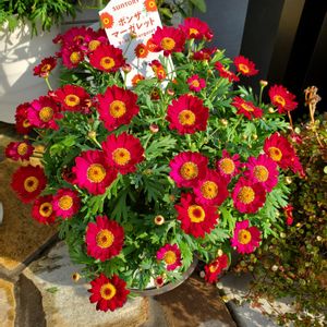 サンフラアンバサダー2022で頂いた ボンザマーガレット チェリー🍒 お固~い蕾でなかなか咲かず、 やっ~とスイッチも入り、連日の暖かさから、 一気に増えました。 3年ぶりに、ベビー苗から育てるの、なんだか新鮮です。