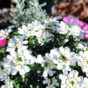 おはようございます🧓 この時期らしい寒さとはいえ…やっぱり寒い朝です✨☀️ 寄せ植えの中のイベリス…澄み切った空気の中でその白さがいっそう際立っています🤍🥰🤍 朝日に照らされキラキラ輝いて💖…あら、アブさんがお食事中のようですネ☺️ 一昨日の青森県沖の地震で災害に遭われた皆様に心よりお見舞い申し上げます🙏🏻 どうか穏やかな一日でありますように…✨🍀❣️