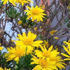 今日のお花 ユリオプスデージー 朝の散歩で元気に咲いている黄色いお花 6時前の朝焼け 秋の澄んだ空が美しい 🏷雲仲間🏷アート雲☁️ 🏷土曜はお空の発表会 🏷朝散歩 🏷気持の良い朝 🏷笑顔で感謝を