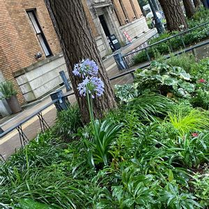 横浜日本大通りにて見つけたアガパンサス。花言葉「知的な装い」が、ピンとくる上品な色合いです。