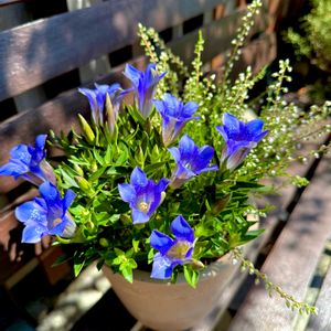 たっぷり秋の陽射しを浴びた 可憐なリンドウ💙.˖٭* 爽やかなブルーが映えます·͜·ᰔᩚ プックリ大きな花房で 存在感がありますよ✿ܓ ②堤防沿いの散歩道に 咲き誇ってたサルビア🍀 青空もキレイでした𖤣𖥧𖥣。𖥧𖧧