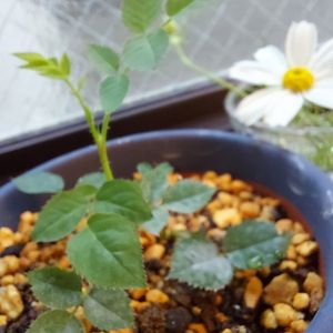 ミニバラ🌹 一番花をcut✂️してた時に捨てられなかった枝をダメ元で挿したら、なんと根っこがしっかりと出ていました… ので本日鉢上げ🙌🌿 細かったので無理かなーと思ってたのに…わからないものです 隣のコスモスもカチカチの蕾だったけど水に差してたら開きました🌸