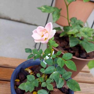 天挿ししてついたミニバラが開きました🌸 どうしても一輪は咲かせたくて。。これからは株のためにしばらくお花とは会えませんが。 秋にはまた会えるかな…🌹