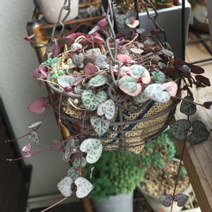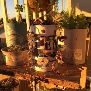 100円雑貨でブラブラプランター💕 麻の袋をカットして土入れて😊 ハートカズラちゃんをIN 伸びたらいいな💓💓💓 リメ缶では手狭だし伸びたら 下に着いちゃうから お引越しをしました! 多肉に出会うまで、植物は好きでも 上手く育てられずにいた私♡ᵕ̈*⑅ セダムに出会い エケベリアに出会い 失敗しない楽しさを 知りました💕 そして、この頃は毎年花が咲く😊 という楽しみを知りました💕💕💕 お友達にプレゼント出来る楽しみも✨✨ GSあっての 体験だと思います✧*。٩(ˊᗜˋ*)و✧*。アリガトウ