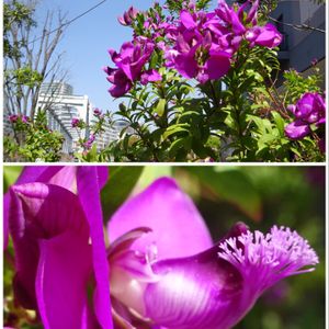 おはようございます😃 🏷真っ赤な火曜日に参加します (ちょっと強引かな) ポリガラ・ミルティフォリア ヒメハギ科 ヒメハギ属 面白いお花が咲いていました 天王洲アイルで 4月1日 メモ 上部の葉腋や茎先に長さ1.5~4cmの総状花序を出し、紅紫色の花を2~3個つけます。 花は紅紫色、5個ある萼片のうち2個が花弁状に大きくなって目立ちます。 花弁は3個で筒状に合着し、下側の先端に房状の付属体があります@エヴァ グリーンより ポリガラ・ミルティフォリアは南アフリカ原産の常緑低木で、4月から5月にかけて、スイートピーのような青紫色の花をたくさん咲かせます。丈夫で栽培には手がかかりません。一般的に「ポリガラ」と呼ばれるのはこの品種@園芸ネットより