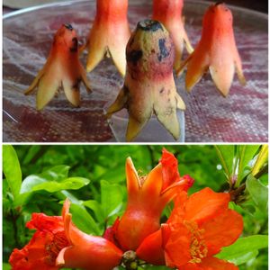 おはようございます😃 🏷真っ赤な火曜日 参加させてください 今年のザクロ 上段 蛸ちゃん 勢揃い なんだか宇宙船に乗り込む前みたい 下段 萼がふっくら 散歩道で 6月18日