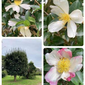 左 ヤマモモ 雌雄異株と言うことなので雌株なのですね(良く知らないので😅) 直径3㌢ほどの球形になり熟すと食用になる 右 ナツツバキ 白い花を咲かせます