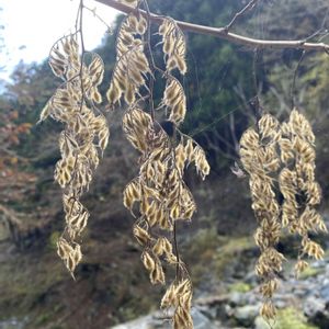 ①オオバアサガラの果実見つけた〜 これって豆ですよねぇ✨あれ?マメ科? ③株立ちが一般的?古くなった幹は後進の若い幹に譲って枯れてしまいます(?) ④…とか思って上流に進みましたら、一本立ちの個体。けっこう太い木になってました😁 ⑤このような沢の石ころの川原に群落を作りますよね オオバアサガラ、観察しやすいものを見つけるミッションを承っていました。登山口からわずかの場所なので良い仕事したかもしれません😎(もう少し🚗アクセスしやすい場所だったなら…😅) 大葉麻殻 エゴノキ科アサガラ属 11月16日 犬越路(裏丹沢)神ノ川ヒュッテ付近