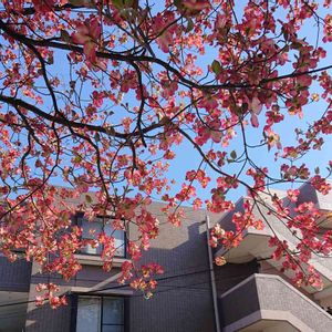 オレンジ色とピンクの間のような色合いのハナミズキが、もうこんなに咲いていました🎵 とても素敵な光景でした✨(*´˘`*)