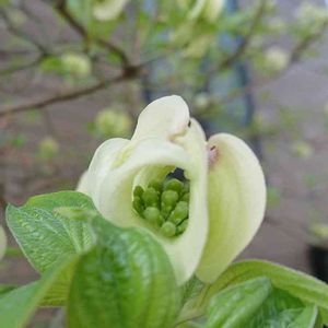 ハナミズキ✨ 中のグリーンの粒が本当の花。今はまだ蕾ですね。 これが開くと、4枚の花弁、オシベ、メシベが見られます 外側の白い花びらと思われてしまうものは、総苞という、花序(花の集まり)全体を包んで保護してきた葉の変形したものだそうです。 こうやって優しく守ってきたのですね。 もうすぐ役目を終えて開きます。 ご苦労様🍀