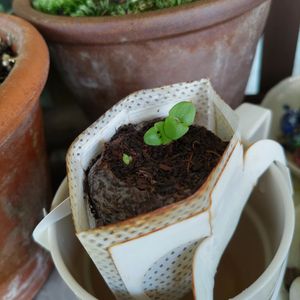 おはようございます😊 いつもありがとうございます💚 コーヒードリッパーでスイートバジルの種🌱 芽生えました💕