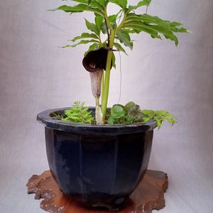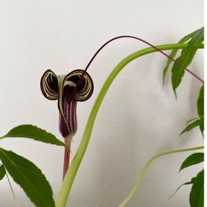 1鉢だけ室内に置いていたウラシマソウが開花しました。 野外のはやっと先っぽが見えてきたくらいです。