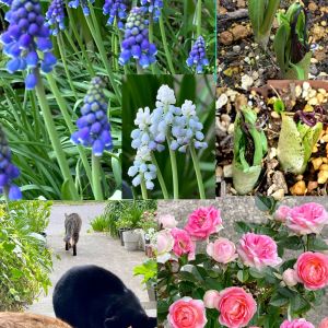 おはようございます 今朝のお花達です ムスカリが咲き始めました 水色のお花が可愛いです ウラシマソウはこれくらい ミニバラが沢山咲いています 葉っぱが黄色になって少しになりました 黒シマお兄ちゃんはご飯を少ししか食べません 今日も見ていただきまして、ありがとうございました