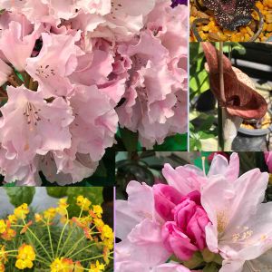 おはようございます 昨日半年振りに友人と出掛けました フラワーランドには綺麗なお花や珍しいお花が沢山ありました ↖️西洋シャクナゲ モーニングマジック ↘️西洋シャクナゲ 桜狩 淡いピンク色に憧れます ↙️ユーホルビア フェンスルビー 初めての可愛いお花をお迎えしました ➡️ウラシマソウ 紅乙姫 ↗️カンアオイ 初めて見る花色でした 今日も見ていただきまして、ありがとうございました