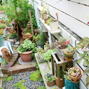 昨日はDIYに1日費やしました✨上の写真は1つ100円の端材に色を塗り鉢が置けるようにして、下のはしごはこの色の雑貨が欲しくてやっと作れました❗ミニ多肉ちゃん寄せ飾ったよ🎵隊長も特別出演 笑😂