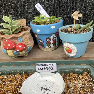 mimimiさんからいただいた多肉ちゃんをGS繋がりでいただいたリメ鉢に植えました。 メロカクタスの種まきをしました✌︎('ω')✌︎ 発芽が楽しみです♪♪♪