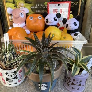 🏷️ パンダの日 今日かっきーさんから届きました🎁 ① ② ③ 十二の巻 ディッキア アガベ五色万代 すごく素敵な子ばかり 育てるのお上手です♪♪ パンダの日に届いたので 45さんからのパンダ鉢とパンダ缶にインします🐼 大きな柿やみかん 柿にはお目々👀 可愛い🩷💕 ピーカンナッツ 梅のお菓子 まつぴよさんのパンダちゃんたち 興味津々です🐼🐼🐼 ④ マイメロ ちゃん mimimiさん とこさんからのいただきものです 繋がりに感謝感謝です🥰