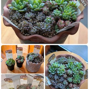 11月30日に入手した古都の葉さんの苗ほかを植え替えしました〜〜 古都の葉さんの苗を植え替え〜上に写る2個がキューブバブル、右にロッティ✕プロリフィカ3個、ルズリー✕マクドガリー子株入れて4個、ペレスデラロザエhyb.ブルービーン、プロリフィカ✕ラウイ4個、の6種 そうなんです〜mimimiさんも昭和記念公園に来ていて再会を果たし、古都の葉さんの苗が、13時半からチケットなくても入れるというので、コンビニでオニギリ買って2人で時間を潰し、並んで買って、めっちゃ悩んだので、もう一回並ぼう!で、そんなに長い列になってなかったので、6個の苗を選べたんです〜めっちゃ悩んでめっちゃ楽しかったけど、何よりみんなとのおしゃべりが楽しかったです♥ ②この鉢は990円で購入すると250円の苗を2つプレゼント🎁って〜鉢500円になるよぉ〜なら買いましょうよ〜でmimimiさんとお揃い〜中は古都の葉さんの苗 ③ippoさんの苗は5つ選んで1000円コーナーがあって、これまたお買い得!で選びました〜〜 mimimiさんと一緒だったのでめっちゃ楽しいイベントになりました😋 みんな違ってみんな良い〜〜で真剣に苗を選んでてほのぼのタイム〜〜