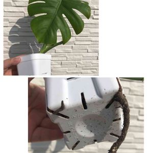 茎伏せから育てたモンステラです!5月になったら植え替えを〜と思っていたモンステラでしたが、鉢底から根っこがニョキニョキニョキニョキ🤣🤣🤣 これは、どうすれば?鉢を切ってしまう?根っこを折って、持ち上げる?このまま大きい鉢に植えておく?