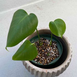 (*´◒`*)WOW!! 9年かけて縦横40cmから横120cm強、縦150cmにまで大きくなってくれた通称ヒメモンステラ。20本ほど葉、葉付き茎を切り、挿し木したり水耕栽培して根を出した物を仮鉢に植えました(^^)ちっちゃいけれど、新芽キター!♡元気に大きくなってね(^^)(ラファドフォラ・テトラスペルマ) #ヒメモンステラ#観葉植物#増やす
