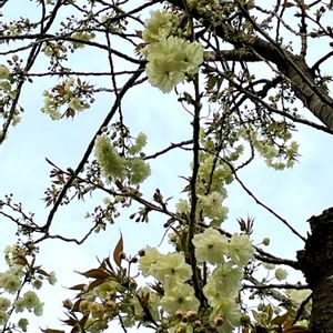 御衣黄桜 (もしかして鬱金桜?) 近所の拡張予定の道路脇にあるので、いつか切られてしまうかも…と心配しつつ、今年も無事に花を見ることができた✨ ピンクの桜も大好きですが、黄緑色のこの桜の花もとても好きです☺️